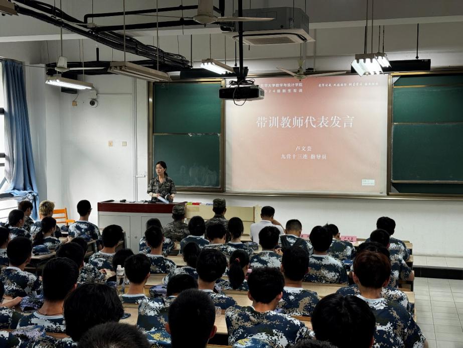 员工代表韩依蓬代表参训员工分享了他对军训的认识和期望。十三连指导员、新生辅导员卢文芸代表参训教师发言,介绍了军训日程安排。