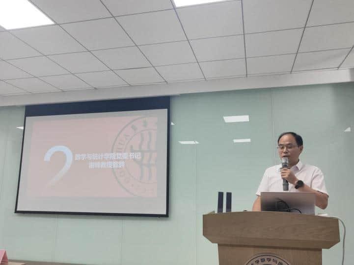 谢峰对来自全国各地的新生家长们表示热烈欢迎,指出数学作为基础学科在现代高科技发展的重要作用,并强调了家校协同在育人环节的不可或缺性。